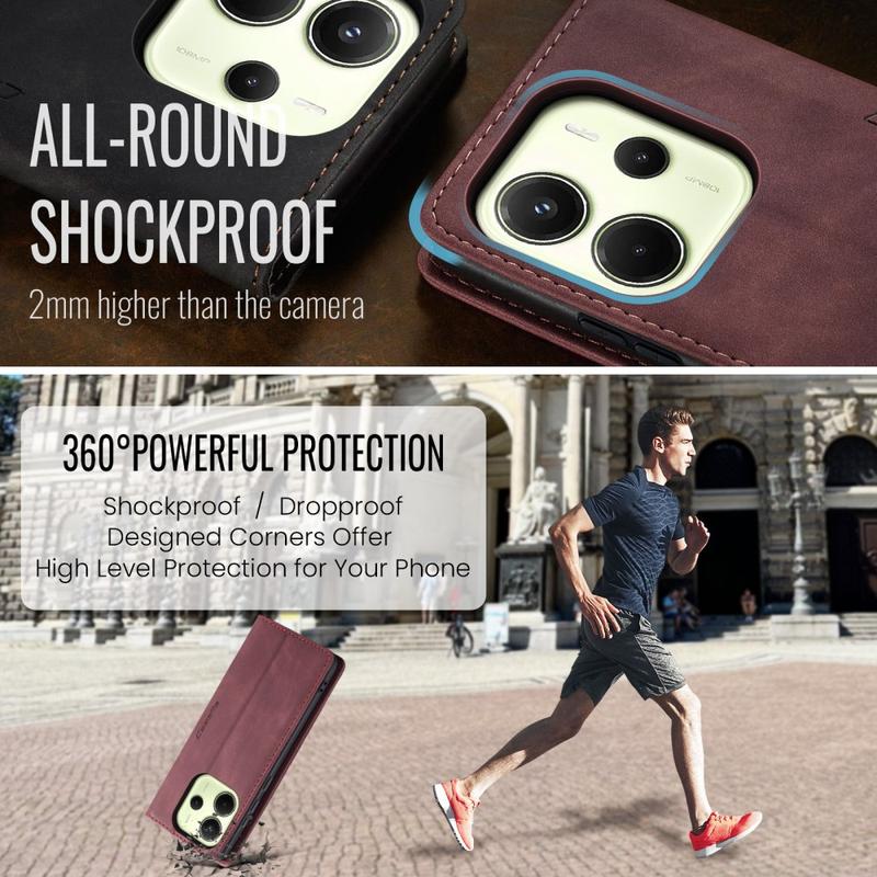 Eine Kombination aus TPU und Polyurethan bietet Rundumschutz für das Xiaomi Redmi Note 14 4G und schützt es vor Staub, Schmutz, Stößen, Kratzern und täglichem Verschleiß. Die magnetische Anziehungskraft hält Dale Hülle geschlossen, und das clevere Design ermöglicht eine freihändige Nutzung, während Sie Medieninhalte ansehen.
