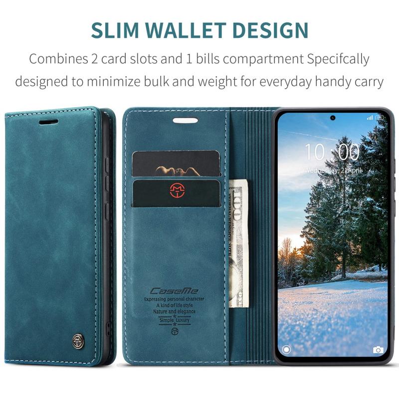 - Eingebaute Magnete halten die Caseme 013 Series Wallet-Hülle geschlossen