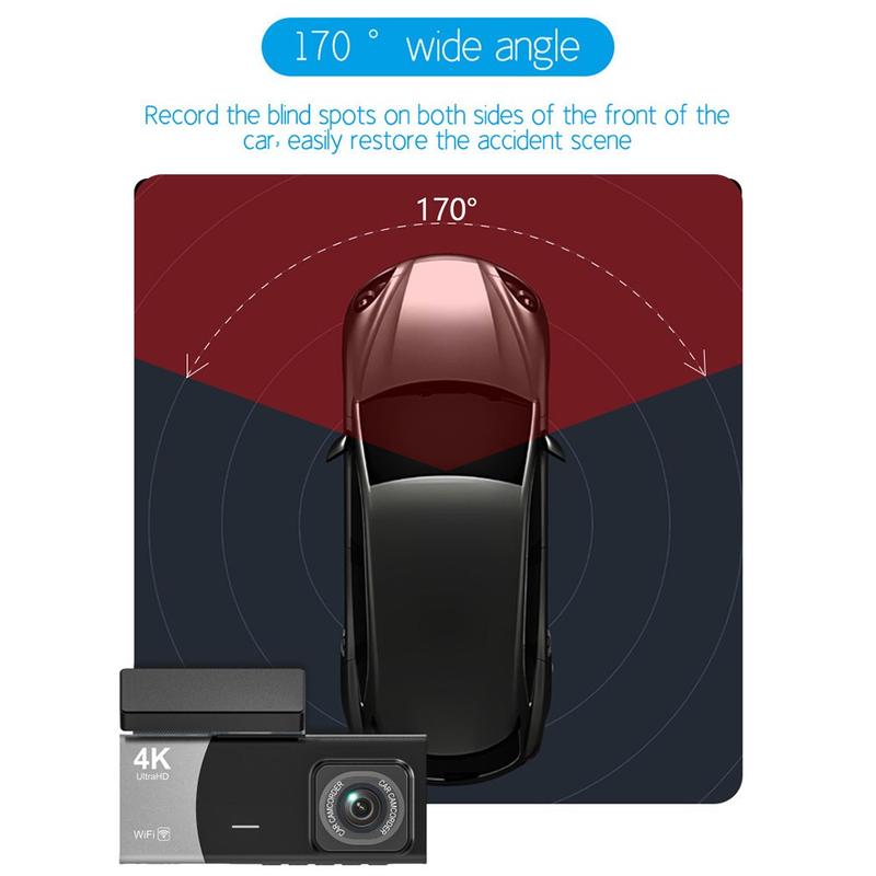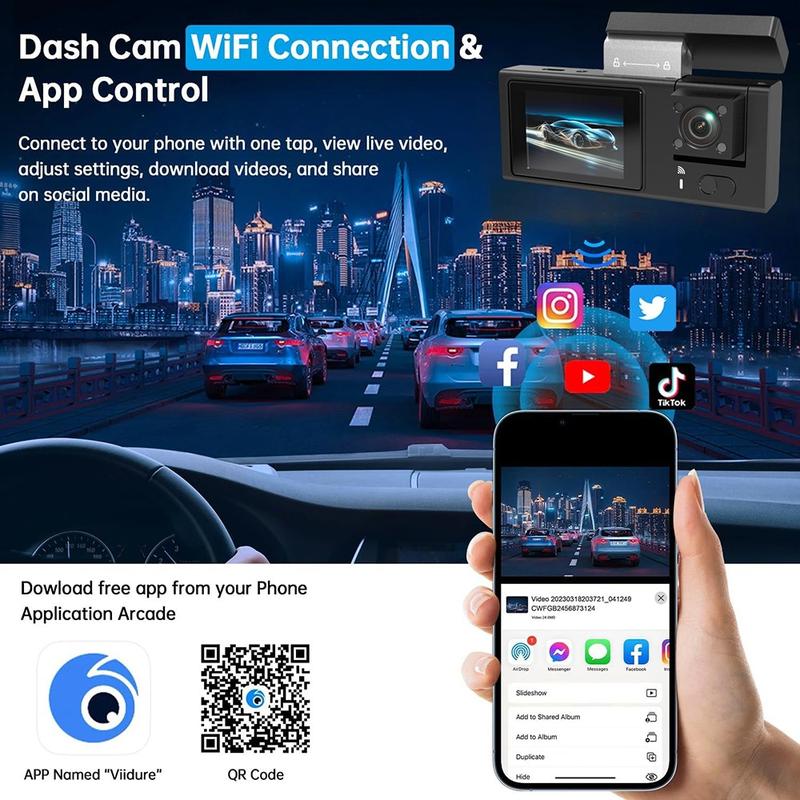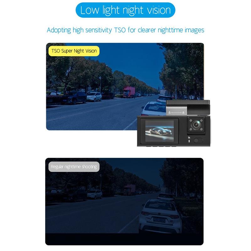 • Y08 4K Dash Cam mit drei Objektiven - Front-, Innen- und Heckkamera mit WiFi, 2" IPS-Bildschirm und G-Sensor