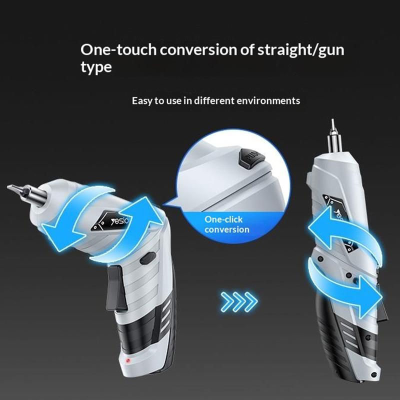 Erleichtern Sie sich alltägliche Reparaturen mit dem elektrischen Schraubendreher-Set YESIDO EC34. Dieses kabellose Werkzeug wurde für den Hausgebrauch, Heimwerkerarbeiten und allgemeine Wartungsaufgaben entwickelt und vereint praktische Leistung, flexible Einsatzmöglichkeiten und ein kompaktes Design in einem kompletten Set. Dank seiner dualen Bauweise können Sie mit einem einzigen Tastendruck zwischen geradem und Pistolenmodus wechseln, was das Arbeiten sowohl in offenen Bereichen als auch in engen Räumen erleichtert.