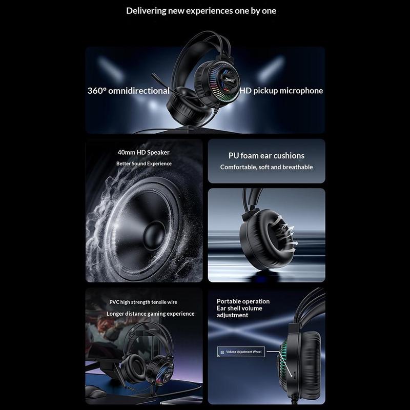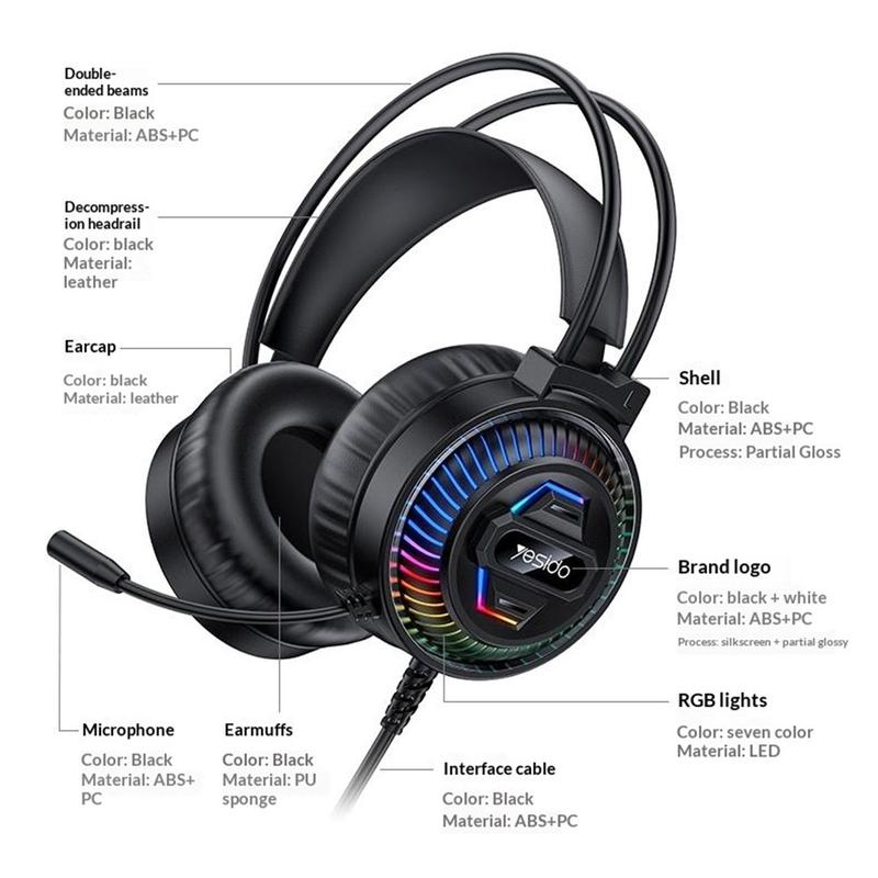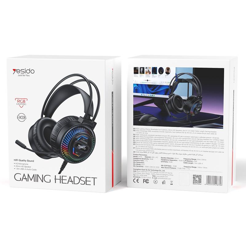 Yesido EK06 - Kabelgebundenes RGB-Gaming-Headset mit 40-mm-HD-Treibern und 360°-Mikrofon für den PC