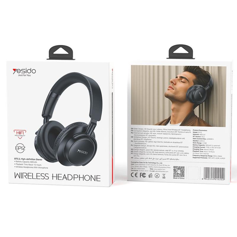 Yesido EP12 Over-Ear-Bluetooth-Kopfhörer - druckfreier Tragekomfort, dualer kabelgebundener/drahtloser Modus, Sprachassistent-Unterstützung
