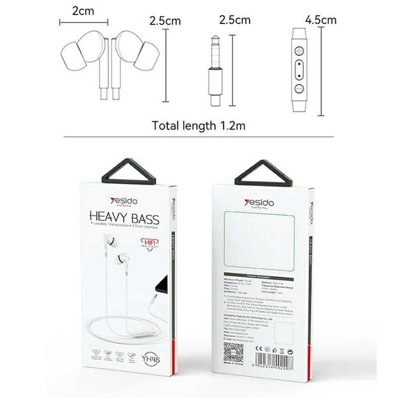 Yesido YH46 3,5-mm-Kabelkopfhörer - In-Ear-Kopfhörer mit HD-Mikrofon, 10-mm-Treiber und Ein-Knopf-Steuerung