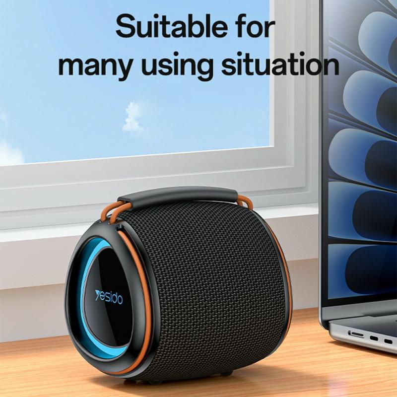 Mit dem tragbaren Bluetooth-Lautsprecher YESIDO YSW40 bringen Sie kraftvollen Sound und Stil überall hin. Dieser kompakte Lautsprecher liefert 8W beeindruckenden Sound und ist mit mehreren Wiedergabeoptionen ausgestattet, darunter Bluetooth 5.3, TF-Karte, FM-Radio, USB, AUX und TWS-Pairing für Stereo-Sound. Die lebendige RGB-Beleuchtung sorgt für ein dynamisches visuelles Erlebnis, während der 1200-mAh-Akku mit einer einzigen Ladung bis zu 4 Stunden Spielzeit garantiert. Leicht und vielseitig, ist er der perfekte Begleiter für Partys, Outdoor-Aktivitäten oder den täglichen Musikgenuss.