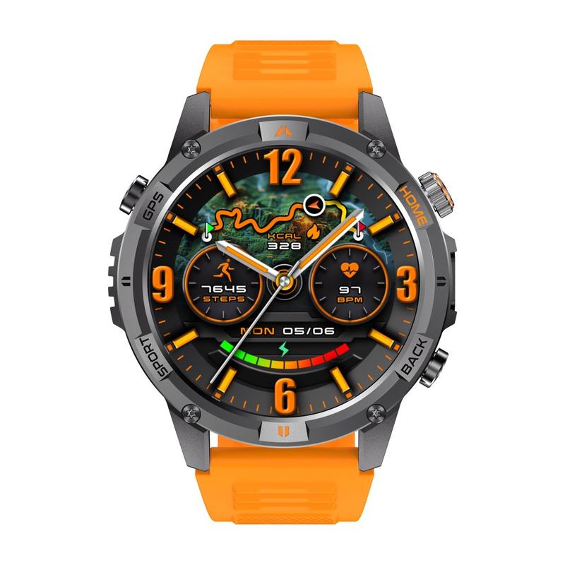 Die Uhr wurde für Outdoor-Abenteuer entwickelt und verfügt über eine eingebaute Taschenlampe, GPS-Ortung und einen digitalen Kompass, damit Sie sich sicher auf Wanderwegen bewegen und Ihre Routen verfolgen können. Der 580-mAh-Akku mit hoher Kapazität bietet lang anhaltende Leistung mit bis zu 40 Tagen Standby-Zeit und ca. 7 Tagen bei normaler Nutzung. Dank der Wasserdichtigkeitsklasse IP68 übersteht das Gerät Regen, Spritzwasser und Schwimmen ohne Probleme.