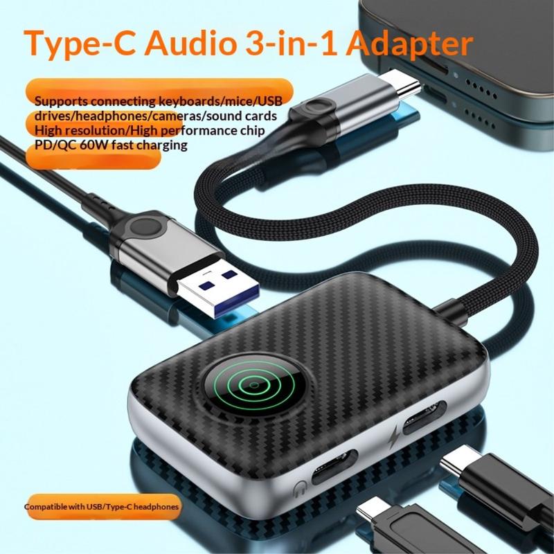 • ZC4339 3-in-1-USB-C-OTG-Adapter/Hub – USB 3.0-Daten, USB-C-Audio/Daten und 60 W PD-Schnellladung