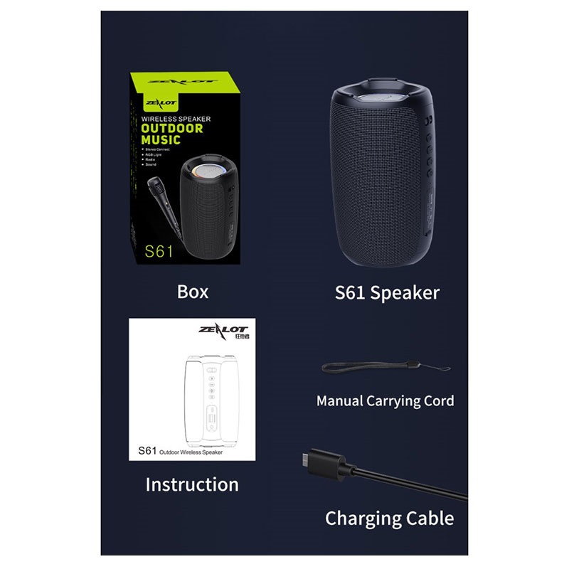 - Der Zealot S61 ist ein tragbarer, kabelloser Lautsprecher mit kraftvollem Sound