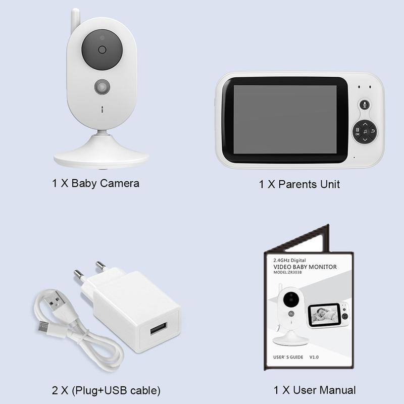 • ZR303B Babyphone mit 3,2-Zoll-LCD-Display, 2,4-GHz-FHSS, Zwei-Wege-Audio, Nachtsicht und Temperaturalarm