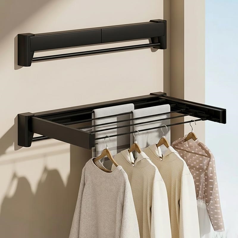 Zusammenklappbarer Wäscheständer für die Wandmontage - Schwarz